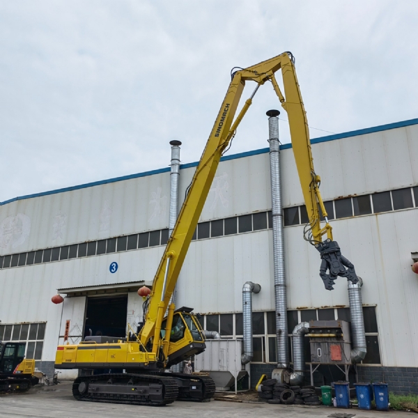 三節臂是為延長(cháng)挖掘機工作范圍根據工況要求而設計制造的挖掘機前端工作裝置,不改變原有挖掘機的使用性能,采用高強度合金板制造,極大提高作業(yè)范圍,工作范圍 13米-30米挖掘機加長(cháng)臂使用范圍較廣、功能較多,其本具有挖掘、破碎、清鉤、鉆孔、推土等功能,從某種角度上來(lái)說(shuō)切實(shí)的實(shí)現了一機多用的功能。挖掘機三節臂提升了挖掘機的機械化程度,機身 360°無(wú)壓力旋轉更是為設備的后續施工提供了便捷,此外該設備能夠在一些相對狹小的區域內工作,更是增加了施工的便利性。